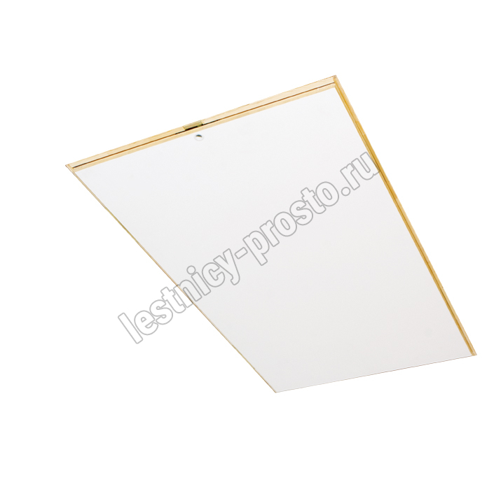 Данную модель лестницы можно использовать даже в домах, где значительна разница температур между этажами, и тем самым ограничить проникновение холода в жилые помещения. Лестница состоит из трех секций, которые компактно складываются и «хранятся в потолке». Крышка люка облицована ДВП белого цвета, что делает ее практически незаметной при установке в светлом или белом потолке.