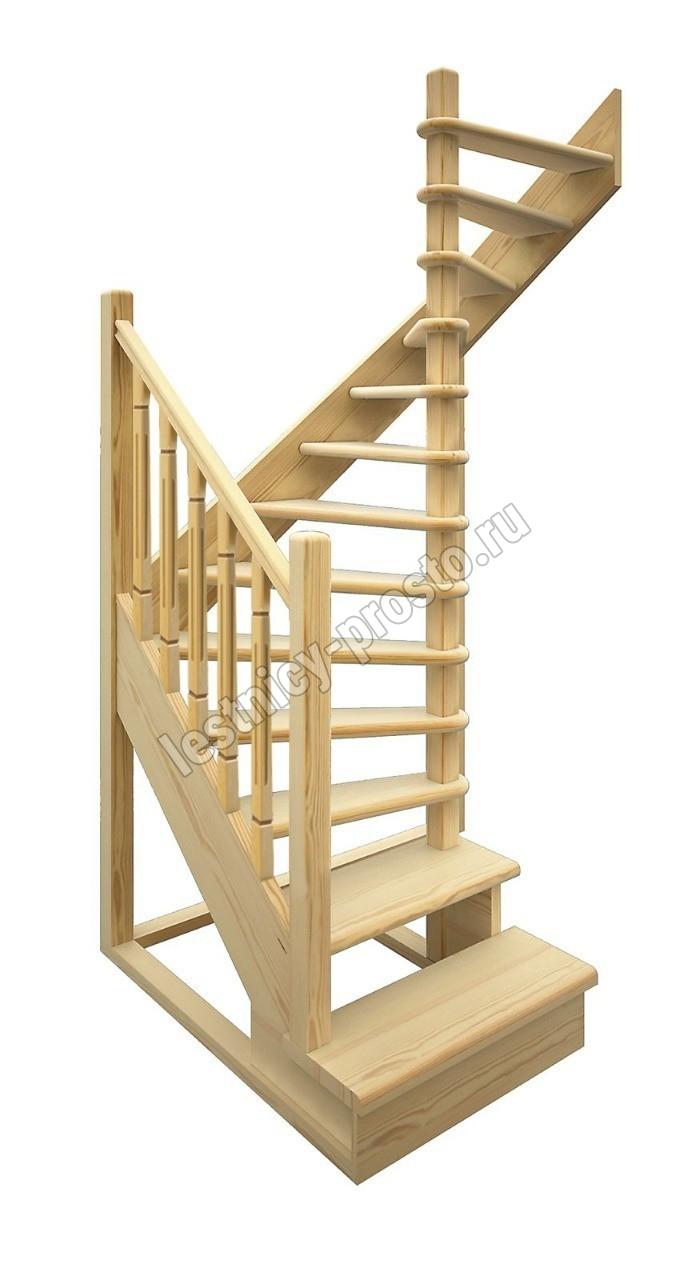Деревянная межэтажная лестница ЛЕС-03 2525-2720 проем 1640-900, Бук