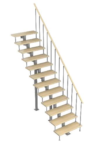 Удобная лестница на косоурах с поворотом на 90 градусов. Открытые ступени визуально облегчают конструкцию. Ограждения по всему маршу обеспечивают дополнительную безопасность и возможность декорирования. Монтаж осуществляется силами двух человек на объекте по указаниям, приведенным в паспорте на лестницу.