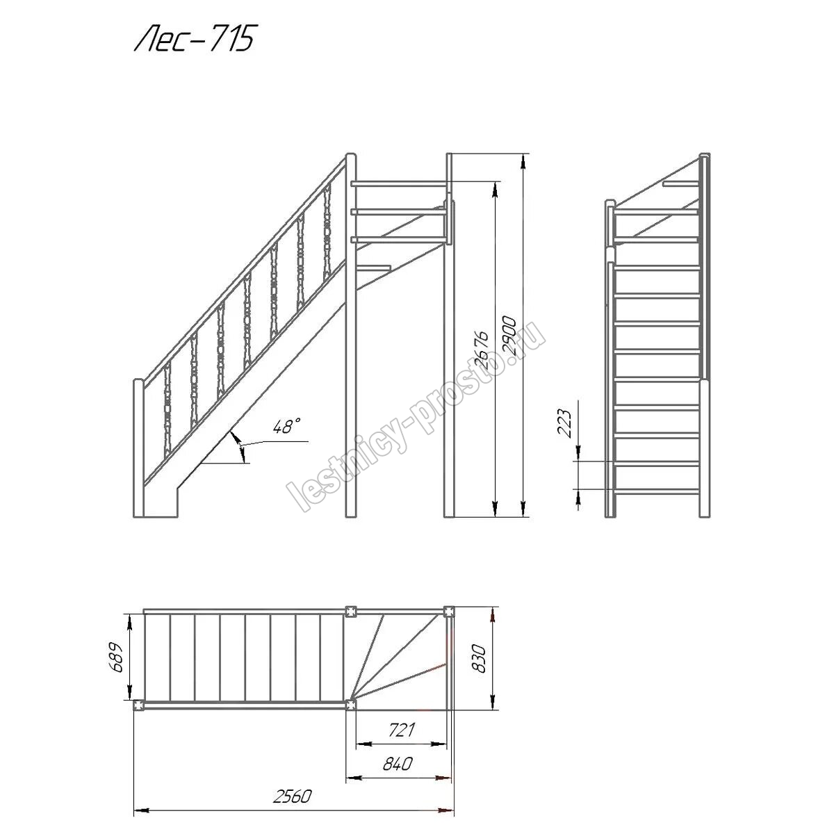 Деревянная межэтажная лестница Лес-715, Лиственница