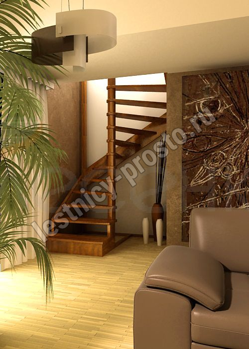 Базовый комплект включает в себя деревянные элементы лестницы без какого-либо покрытия.