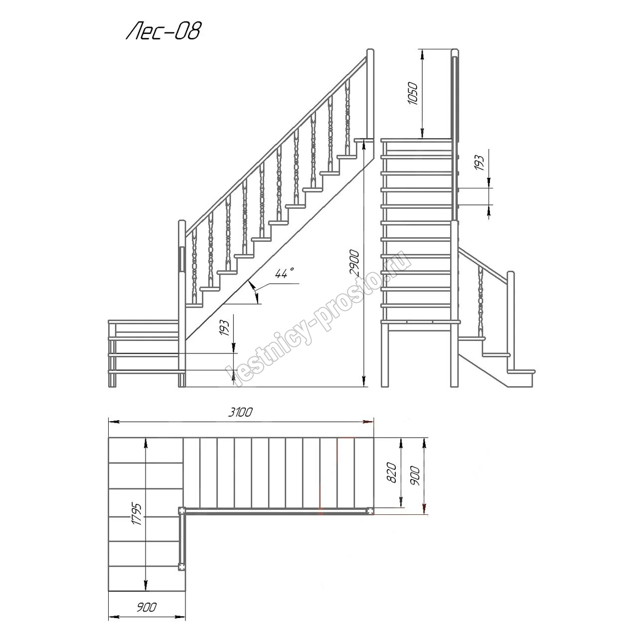 | Деревянная межэтажная лестница ЛЕС-08, Сосна | 10 шт. | 64320 | |