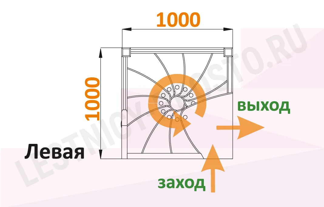Схема лестницы ЛВ-1.0М с поворотом налево