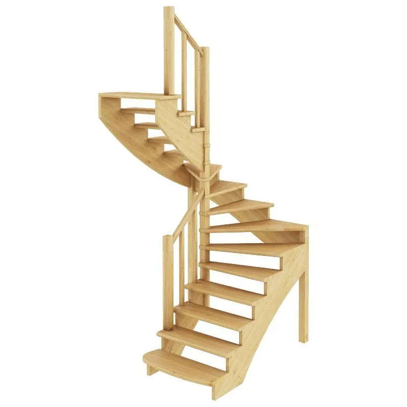 Ступени и поручень лестницы изготовлены из сращенного дуба; тетивы, столбы, балясины - из сосны. Возможно изготовление данной модели полностью из дуба. Базовый комплект включает в себя деревянные элементы лестницы и ограждения без какого-либо покрытия.