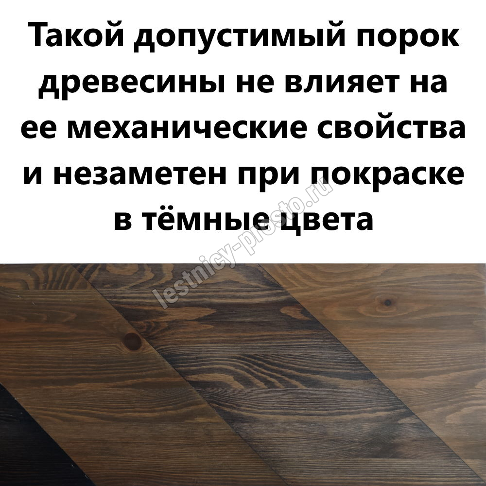 Обратите внимание! Эта модель изготовлена из сосны эконом-класса, что отражается на внешнем виде древесины заметными синими/серыми вкраплениями, эти особенности не влияют на механические свойства лестницы, но могут быть заметны при покраски лестницы в светлые тона!
