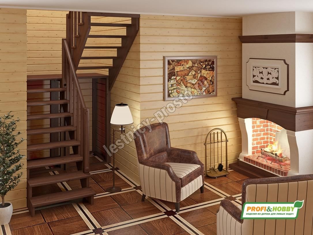 Базовый комплект включает в себя деревянные элементы лестницы и ограждения без какого-либо покрытия. Стандартные ограждения можно заменить любыми на ваш вкус (стоимость может измениться).