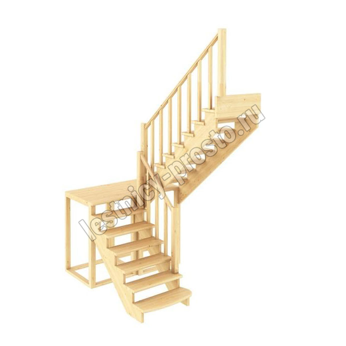Базовый комплект включает в себя деревянные элементы лестницы и ограждения без какого-либо покрытия. Стандартные ограждения можно заменить на любые другие.