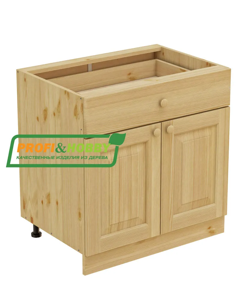 Тумба 2 двери, 1 ящик 600 х 560 х 720 сосна, бесцветный акриловый лак