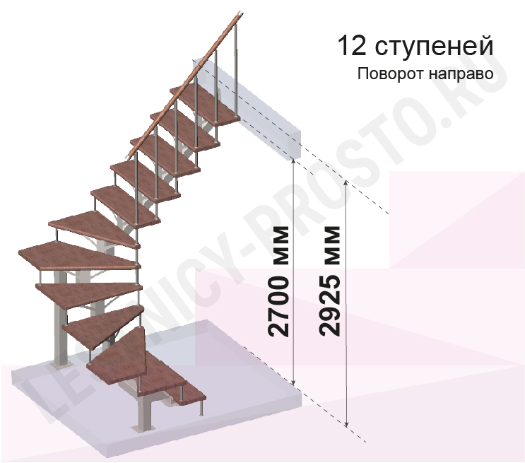 Высота лестницы 2700 - 2925 (12 ступеней) мм