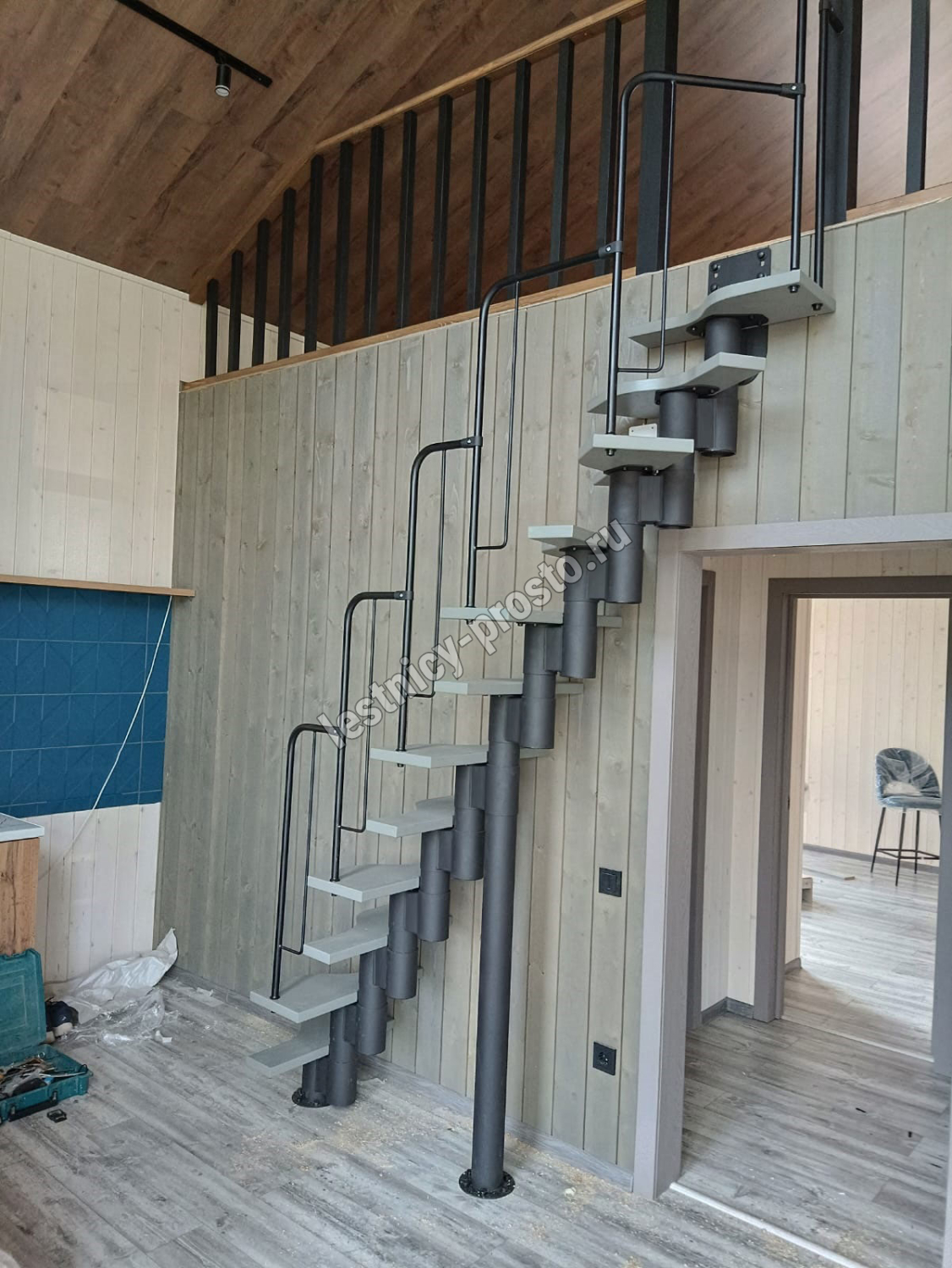 Лестница Prosto Urban Black гусиный шаг 700 мм, h180-264 см (10 ступеней), ясень