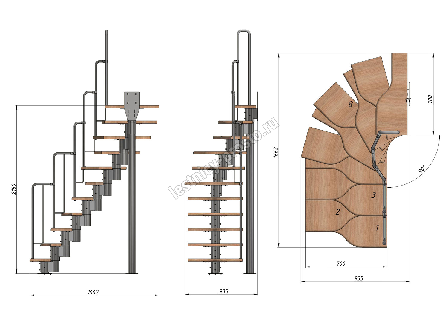 Высота лестницы 1980 - 2880 (11 ступеней) мм