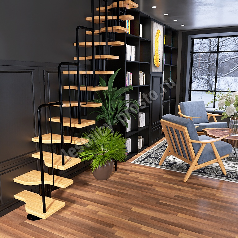 Лестница Prosto Urban Black гусиный шаг 700 мм/Ступени из срощенного ясеня