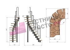 Лестница Prosto Urban Black гусиный шаг 600 мм, h216-312 см (12 ступеней), бук |
