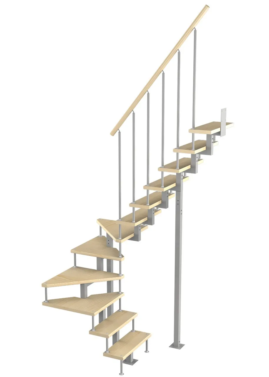 Модульная малогабаритная лестница Эксклюзив 2700-2925, Серый, Бук, Нержавеющая сталь