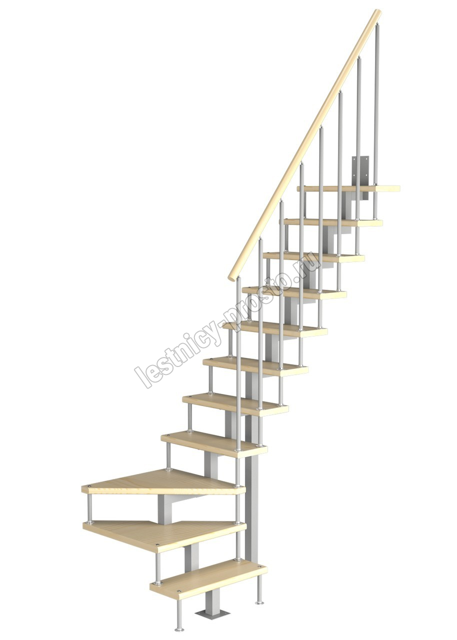 Модульная малогабаритная лестница Компакт 2475-2700, Белый, Лиственница, Нержавеющая сталь