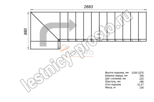 Количество ступеней на первом и втором марше может меняться между собой в зависимости от размера проема, при этом общее количество ступеней не меняется!!!