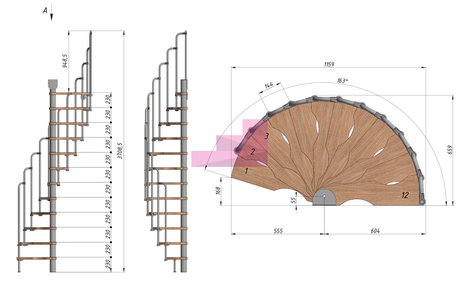 Ступени, элементы каркаса, ограждение, необходимая фурнитура и крепёж.