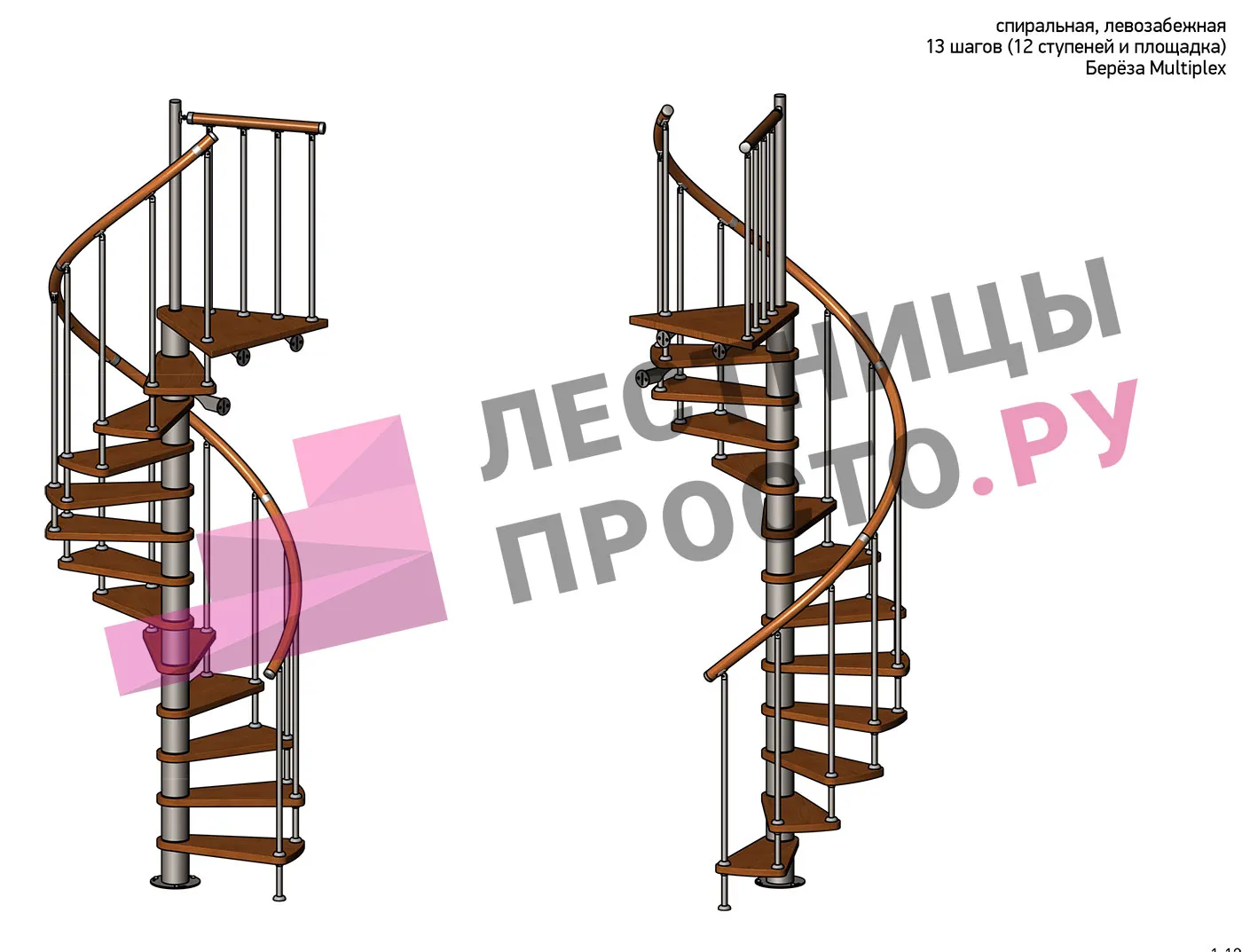 Винтовая лестница Prosto Spiral Black D120см, h275.7-313.9 см