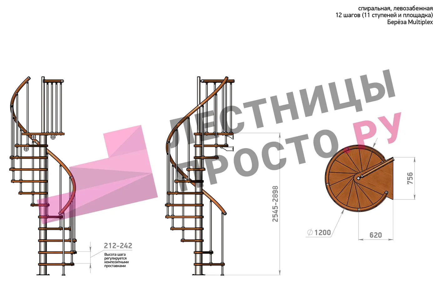 Лестница легко подгоняется по высоте благодаря композитным вставкам в каждом модуле, вариант с 11 ступенями адаптируется под высоту в пределах от 2520 до 2760 мм.