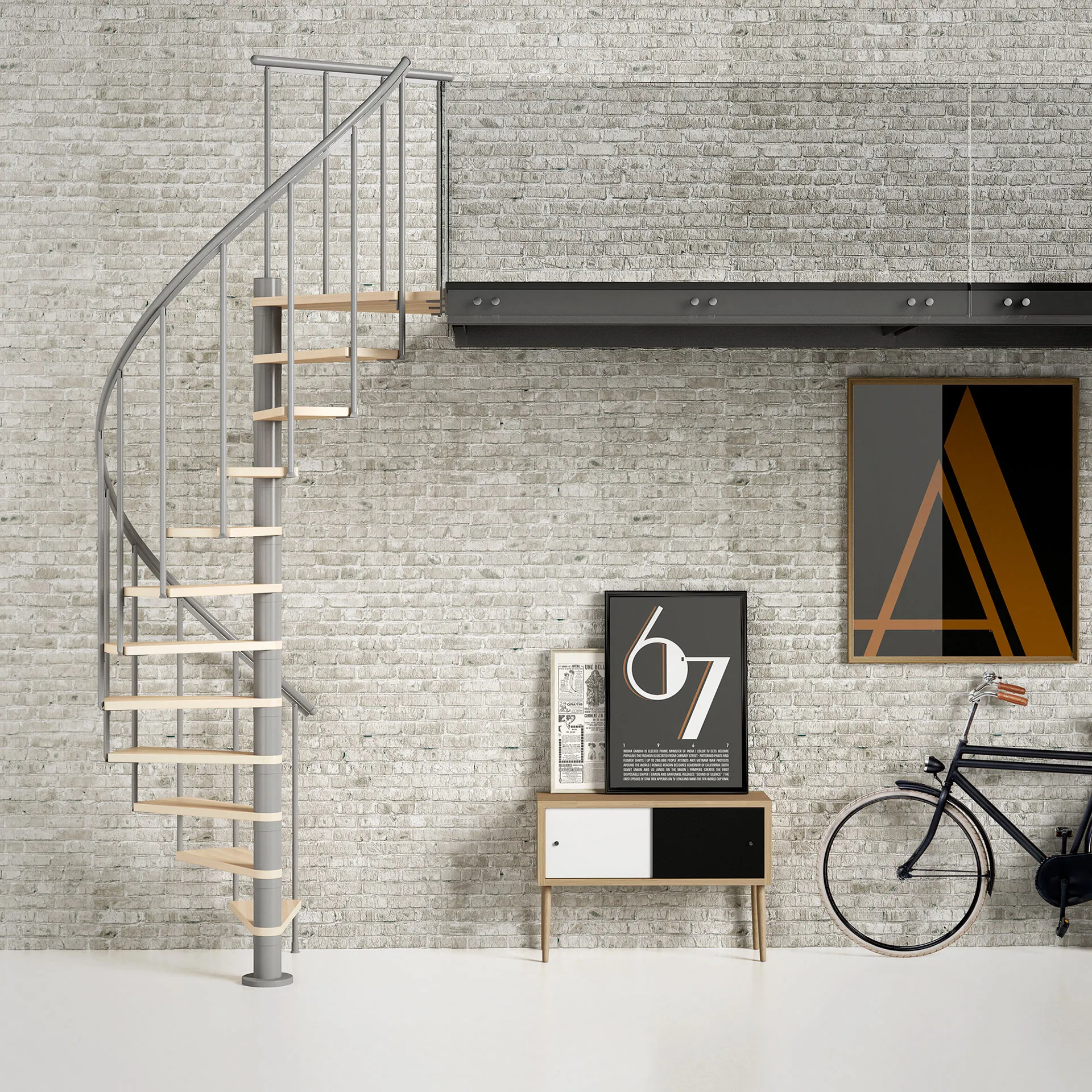 Винтовая лестница SPIRAL WOOD d140 см, серебро, лакированный дуб
